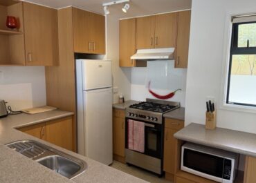The large kitchen area has a full oven, cook tops, dishwasher, extensive cutlery and crockery. Complimentary tea, coffee and biscuits. Netflix and Sky Sport included – great on the 52″ TV. Bathroom has a separate bath and shower. AC Unit and European marble heaters for heating and cooling.